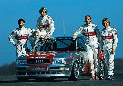 | Nach dem Wechsel von Audi in die relativ junge STW, in der eine Hubraumbegrenzung von 2 Litern und ein strengeres Reglement herrschten, mussten sich die Gegner (u.a. wieder BMW) gegen die Allradler aus Ingolstadt durchsetzen. | |