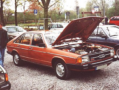 | In 8/76 the second generation of the Audi 100 was introduced to the market: the angular Type43 as 2-door and (much more often) 4-door limo. Accompanying the sedan was from 9/77 on the first Avant that could be described as the first life-style wagon. The top of the line Audi 100 was powered by a 5-cylinder that should become famous. Out of 2.2 litre (that must be around 134 cui ) it provided 136PS (100kW). Not bad already, especially if you consider the low weight. But what followed in 9/78 was probably a shock to the established upper-class companies: The Audi 200 was introduced, but not only with the normally aspirated engine 5E, also the 5T was born. 5T standing for 5-cylinder Turbo. 170 PS catapulted the visually light appearing Audi 200 into the premium sector for the first time. The first step to where Audi is today. |