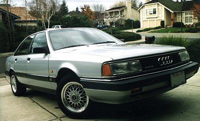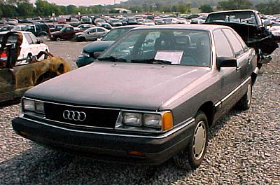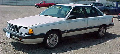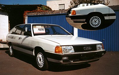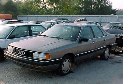 ![]() (2) | An early 5000, as the Audi 100/200s were called in the USA. During the first year (till 85) they had the double headlight setup that might remind you of that of the C2. The 5000 was exported (or imported, depends on where _you_ are) to the US from late 83 on. At that time, the Euro 100 was produced for about one year already! The orange thing besides the headlight is a parking light, the turning signal is placed in the bumper. |