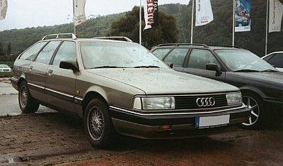 some steel wires pulls the steering wheel away from the driver and tightens the seatbelts. Teaming up with the large crushable bins, a crashing behaviour resulted that is respectable even today. The Type44 was with a cW- (cD- in English) measurement of 0.30 very long the world record holder. The low wind resistance results in high fuel efficiency and low noise level. Even better is an old Type44 with the 4+E gearbox that is very "long" geared. Only around 2000 rpm at 60 mph really are silent and efficient. Speaking of efficiency, the first TDI in a passenger car was introduced in the Type44. That was the initial sparking to the Diesel development that is still going on nearly everywhere on this planet. The Audi 100 TDI with its fantastic 120PS inline 5cylinder won many prices and world records both modified and stock. Many people like to speak of heat development in the cab due to sun radiation. It is not really that bad: The plastic won't melt! Seriously: Comparing the Type44 not with cars like Golf I or II (74 to 90) but with modern cars with about the same wind resistance, you will see that they nearly all have air conditioning. The Type44 gets not much hotter than these. To the US guys this may seem strange, but an AC was not common in Germany and the rest of Europe until the last years. The Audi 100 Avant was introduced in 3/83. The Audi 200 followed in 6/83. In 11/84 the Audi 100 and 200 were available with quattro. Due to its long production run of over 8 years and the two lines of Audi 100 and 200 in Europe and some special versions, the history of the C3 is quite complex if you look deeper. For now let's look at the body styles and the technic only. |
