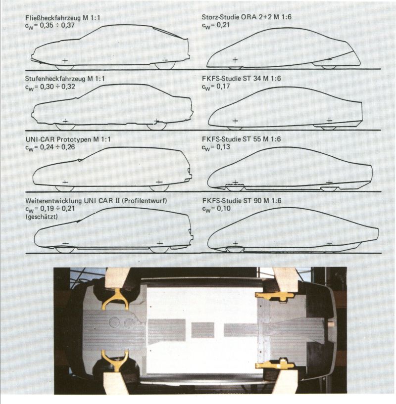 In the lower half of the picture you can see the fully sealed bottom of Unicar. Normal cars create more than 50% of their drag beneath the car!