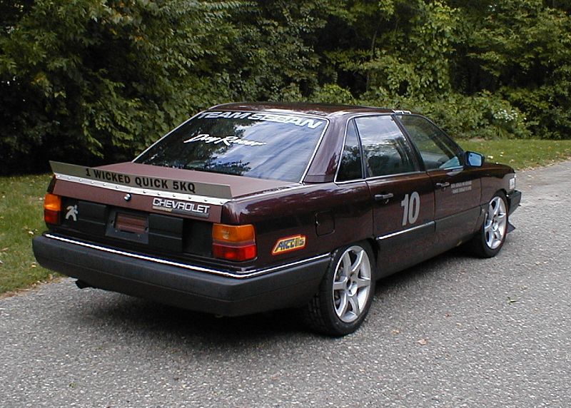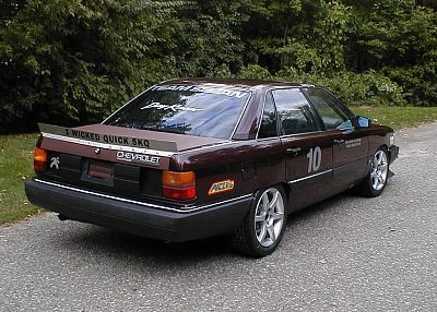 | Even if Larry races his '87 Audi 5000 CS Turbo quattro in none of the big racing series, it sure is a car to watch. Larry sticks to smaller series as in the major ones it would be regarded as "unlimited", caused by the bodywork, having to compete with 400 to 500hp monsters. But Larry chose to let the slightly tuned 10V turbo engine in the car and race against cars like modified Porsche 944 Turbos in a less professional series. |
