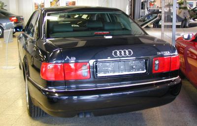 Diesel engine would continue its road to success in the luxury class. The A8 on the right has the 3.3 litre V8 TDI. Today S8 (followed by the other S-modells) wears aluminium rear view mirrors to commemorate the polished body of the concept car. | |