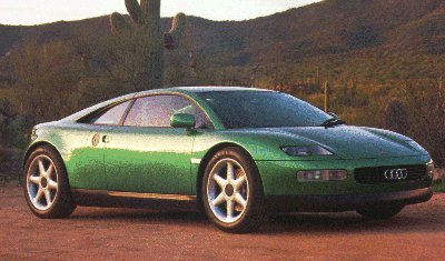 | On the left the Avus with its W12 (only an dummy) that relates in appearance and name to the legendary world record racer of Auto Union, and on the left the milder quattro Spyder on the right. While the Avus was never meant to see production, the Spyder really should be built. Pretty late Audi realized that the projected price tag of under 50.000 Euro could not be reached. Perhaps this was a mistake, today such an sportscar would fit into Audi line up really well. Positioned clearly above the TT with a price tag of around 60.000Euro it could threaten Porsche and BMW. But in 1991 this was utopian. | |