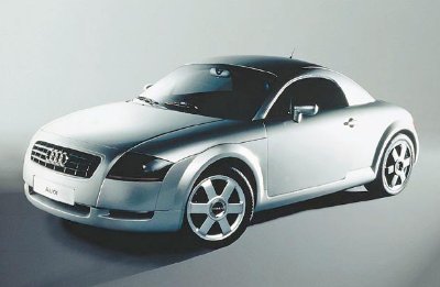 | The TT, too, derived from a concept car that was very close to the actual production car. Above the TT Studie and on the right the production TT. You can see that except from the rear roof area virtually everything was carried over. | |