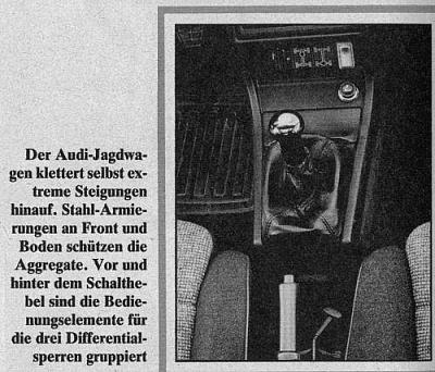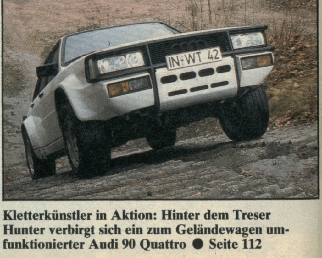 It has all wheel drive, hasn't it? A short phone call to Germany results in Walter treser being ready to convert an Audi 90 to a