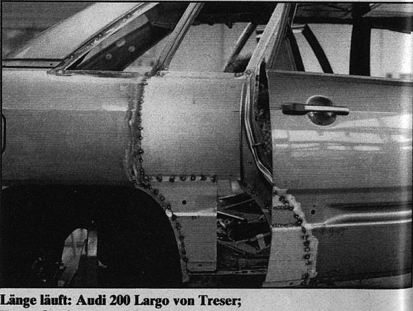 The Treser Largo: What do you do if an Audi 200 is too small for you? You lengthen it by 32cm and thus get a great limo that looks perfect when driven by an chauffeur. The new 32cm consist partially of body panels of the Avant or are completely new formed. | |