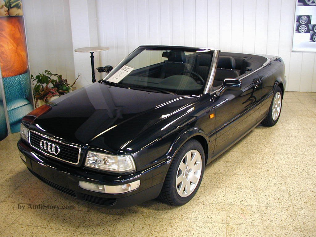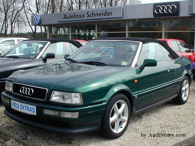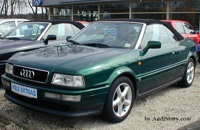 Open or closed, the Audi "Cabrio" (convertible in German) was always a pleasure to look at. While the convertible above has the "old" convertible front fascia, the convertible to the left is one of the last, with the slightly modified bumper with the turning signals reaching around the corner. |