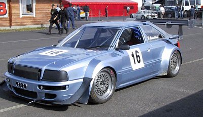 Even with the S2 being the wider-spread sport model of the B4, the Audi 80 Compettition has to be mentioned. Robert has parked his special edition also at the visitors' cars. 2500 cars were built for homologation purposes for the 2 litre touringcar racing series STW. A 16 valve fourcylinder with 140 PS caters for fast movement, alas not as fast as an S2. But the Competition has the larger wing. a smart move by Audi as they were then allowed to use a useful wing in the STW, too. |