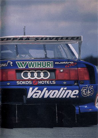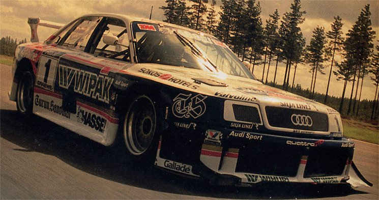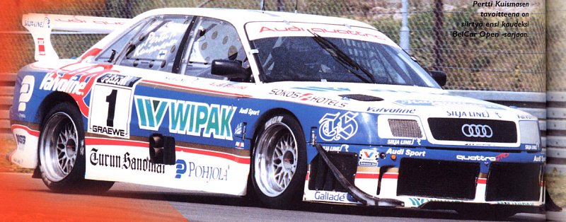 The puzzle was then completed by using parts from the vaults of Audi´s motorsport division. The engine is from an Audi 90 IMSA-GTO, the six speed gearbox is from a ´90 DTM quattro and most of the chassis and suspension components were from a ´91-´92 V8 DTM Evo. Pertti Kuismanen then campaigned this Über-Audi very successfully in Finnish Super Saloons, for example winning 11 of 13 starts and 13 of 13 poles during the ´96 season. In 1997 he drove the car in the German STT aswell as in Finland.