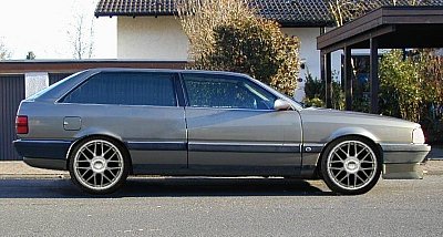 ![]() Coupé with BBS rims, wheelbase, rear "overhang", dropped the roof ("top chop"), pillars not as steep as real car, near front spoiler | |