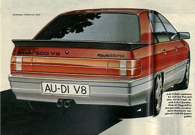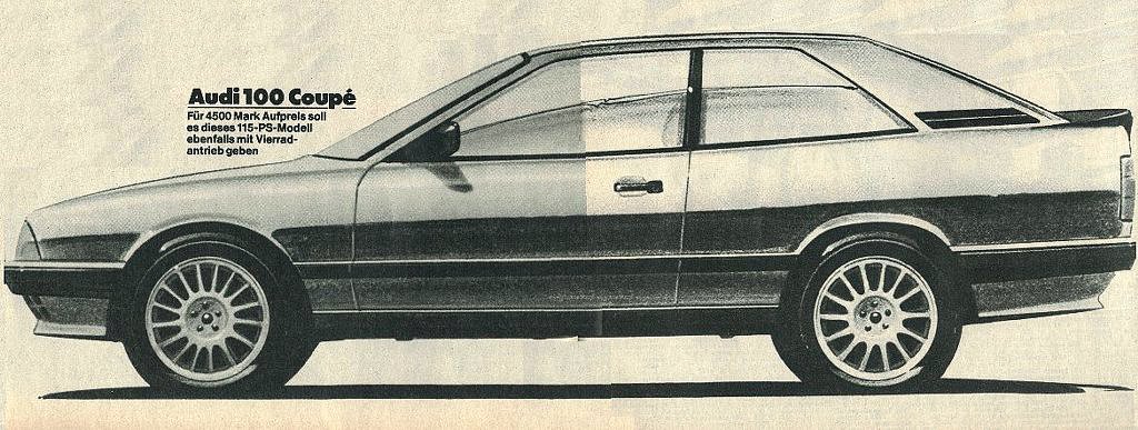 ![]() (4) | ams, issue April 1985: Even if the Audi 100 and the 200 have been introduced already, the phantasy of the press is still alive. Once again an Audi 100 Coupé. But this time more realistic, I think. |