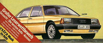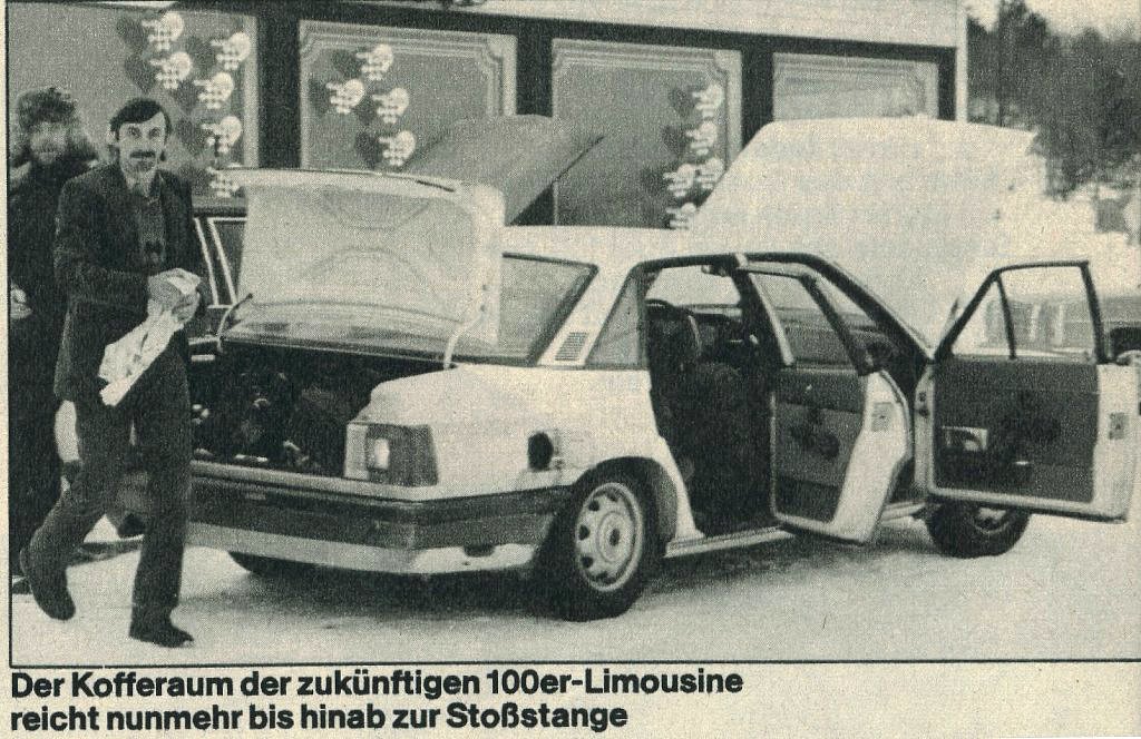 ![]() (3) | Here you can already see the large trunk of the new kid in town. Interesting is the text about the Audi 300. Auto Zeitung writes that prototypes of the Ro 80 successor Audi 300 were driving in 1979 and constructed for sixcylinder engines. This is what ams wrote in 79. After that the project Audi 300 was put together with the project of the Audi 100/200 successor. |