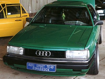 It is common to differentiate between optical and engine Tuning. As a matter of fact, improvements to the suspension and the interieur which make the car perform better, should be regarded as Tuning, too. Of course, there are many Tuning-parts that just improve (or spoil) the optics while doing nothing for the perfomance. Traditionally in Europe, the small cars get more attention: Polo or Golf, but also the midsize Audis like the Audi 80 or now A3 and A4. There was never much for the Type44. And that few parts that were available, diminished at the latest in the early 90s. Treser has done much for the Type44, but not really for the small budgeted people. Of course there were other companies offering body parts, too. On the other hand, engine Tuning was never that much of a problem. As long as you have a Turbo. The big success of the similar 5-cylinder engines in various Audis for nearly 20 years has done wonders for that. On this page some Tuning parts for the Type44 shell be described. I will be concentrating on optical Tuning, but if you have further pics or info on anything, be it other body parts, springs, engine Tuning and so on, just mail it to me. I'll include it here. I am aware that some of the shown parts will not appear contemporary. But they belong to the Type44 as it is a child of the 80s. | |