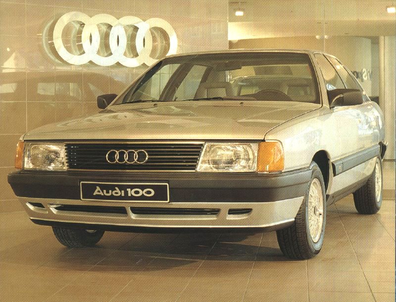 | Mahag is a group of Audi/VW dealers with their own parts production. In the 80s, Mahag offered these nice "aerodynamic front and rear skirts". The parts attach directly beneath the stock Euro Audi 100 bumpers. The car was called "Audi 100 Exclusiv" by Mahag. I suspect that the front skirt would fit a stock Euro 200 bumper as well, but look stupid, as the 200's bumper has a nearly vertical edge. At the back, the skirt should fit Euro Audi 100 and 200 alike, I think. I am very sure that it WON'T fit US-style/20V bumpers.