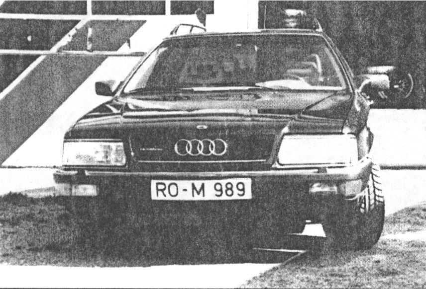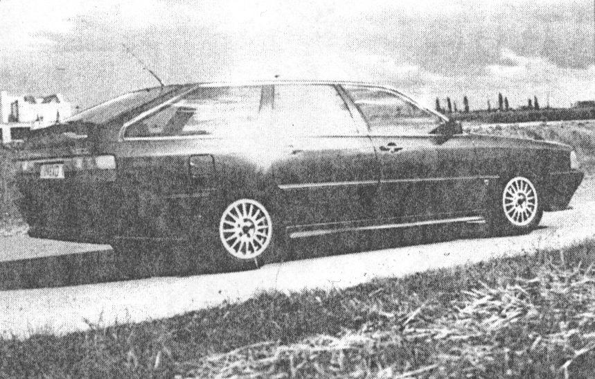 Springs, sport suspensions, rims and body parts made the collection complete. Sadly, Abt has no parts for the old models any longer. The front skirt in V8-look ("200 Trans AM") is completed by a grill surrounding. This is a special part for the 200 front (close-up pic here). If you would just mount a surrounding of an Audi 100, there would be ugly holes between it and the headlights. The custom Audi 200 below also has this surrounding. The front skirt is -according to infos I got from Abt- probably an intensive modification of an Abt part. If this is the case, I presume that another skirt then the above served as a starting point. |